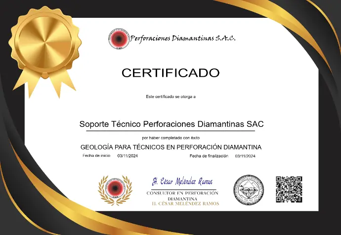 Una vez aprobado el proceso de certificación, Perforaciones Diamantinas S.A.C. emite un certificado de categoría empresarial que incluye un código QR. Este código permite verificar y consultar la autenticidad del certificado en nuestra base de datos a través de nuestros servidores web. Esto garantiza la validez y la integridad de los certificados emitidos.